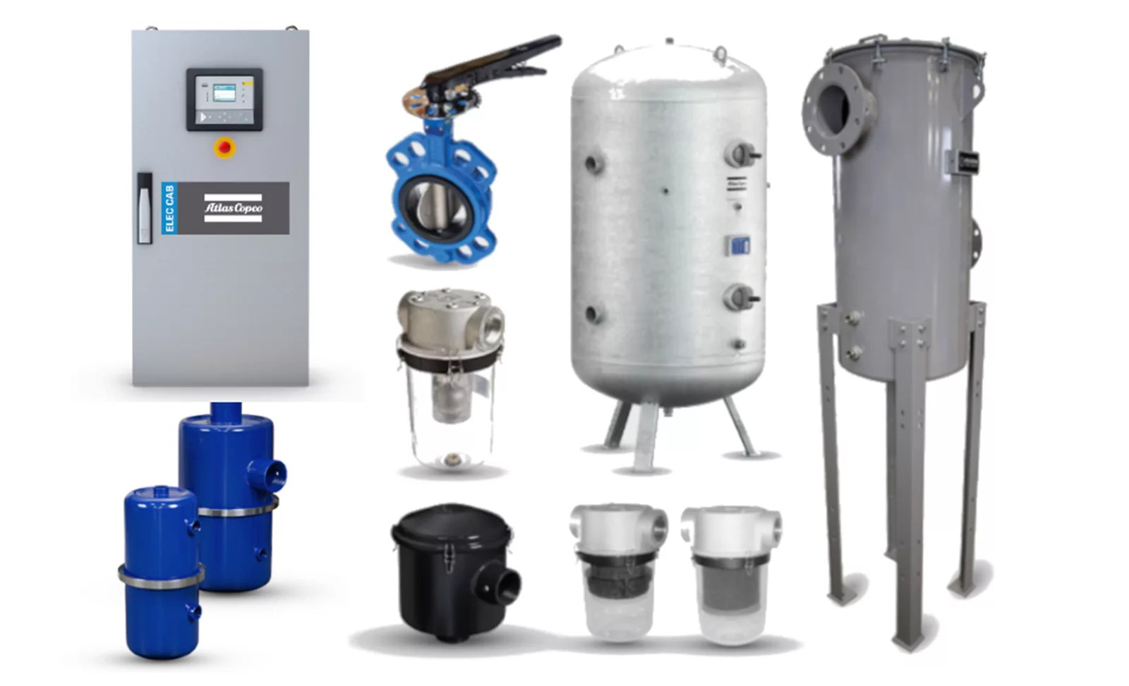Atlas Copco Filtreler, valfler, separatörler, göstergeler ve tanklar